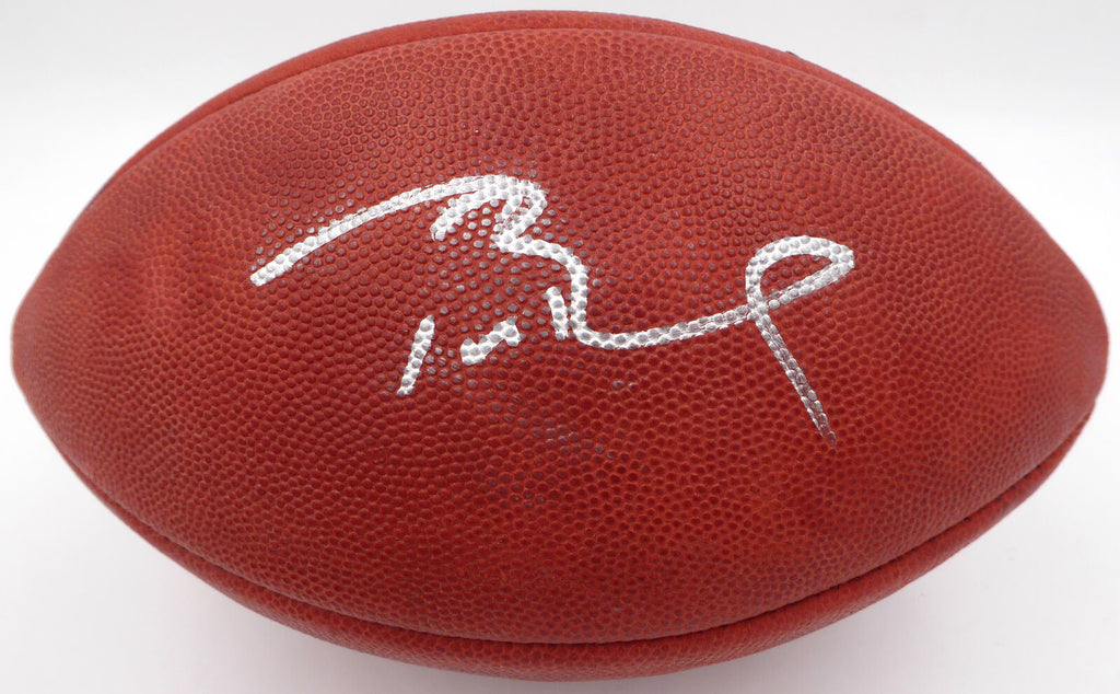 This is an NFL Leather Football that has been hand signed by Tom Brady. There is an imperfection in the signature as shown. This item has been certified authentic by TriStar and comes with their tamper-proof sticker and matching certificate of authenticity.