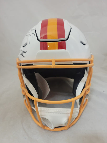 TOM BRADY AND MIKE EVANS DUAL AUTOGRAPHED TAMPA BAY BUCCANEERS FULL SIZE THROWBACK SPEEDFLEX AUTHENTIC HELMET "SB CHAMPS" INSCRIPTION (EVANS)BECKETT QR HOLOGRAM (EVANS)FANATICS QR HOLOGRAM (BRADY)