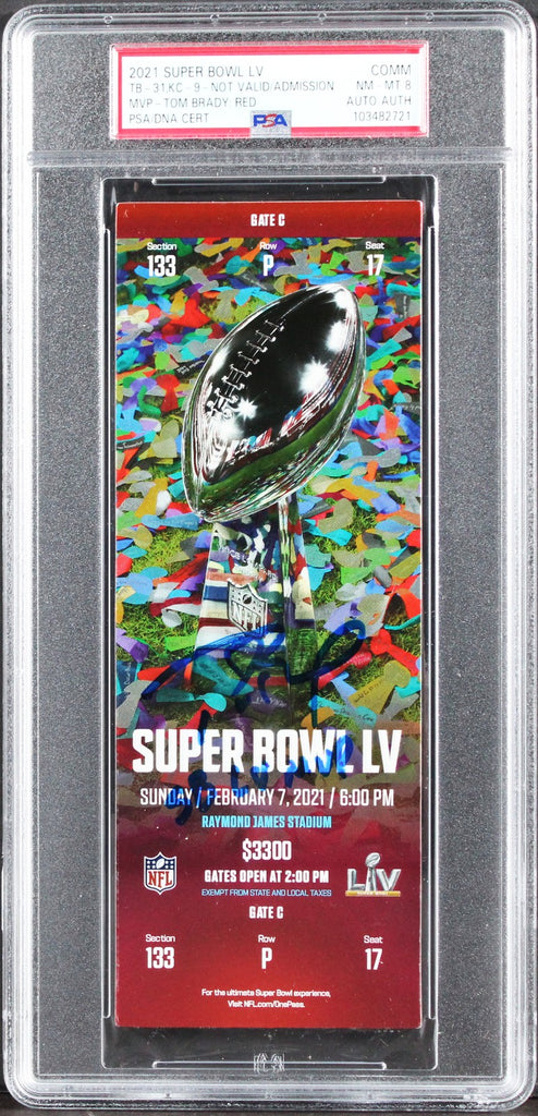 Tom Brady Signed 2021 Super Bowl LV Comm Ticket Stub Graded NM-MT 8 PSA/DNA Slab