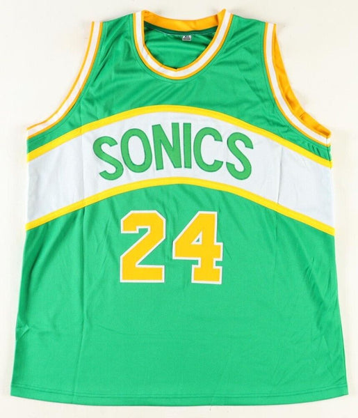 This autographed custom on-court style adult XL jersey has been personally hand-signed by Tom Chambers of the Seattle Supersonics.This autograph is certified by James Spence Authentication (JSA). It comes with the numbered hologram and matching Certificate of Authenticity.Custom on-field style jerseys are a more affordable option for autograph seekers. These jerseys do not have any brand name or tags and are made in the Philippines. They feature stitched on names and numbers and are made to look very similar to the on-field jerseys that the players wear. These custom jerseys are very commonly used in the memorabilia industry.