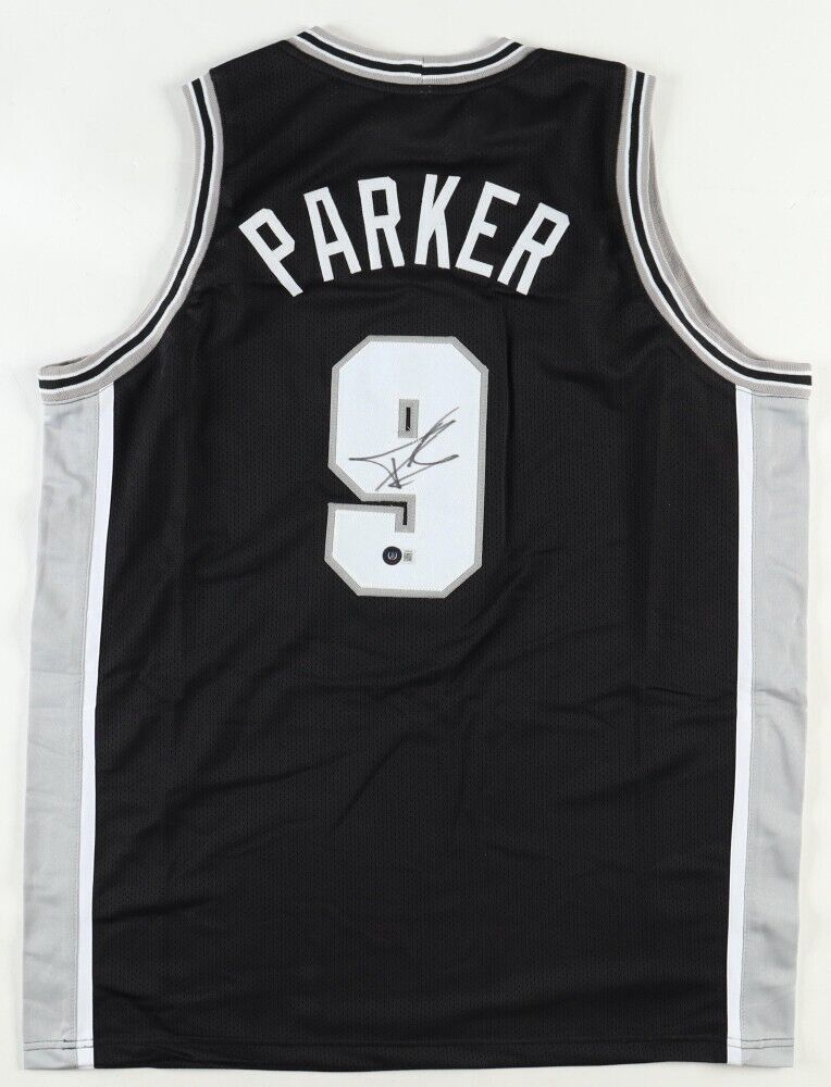 Custom on-court style jersey. Everything is sewn on, size Adult XL. Hand-signed by Tony Parker.The autograph includes an official Beckett Authentication Services serially numbered hologram for authenticity purposes. The signing of this item was witnessed by Beckett.Authentication: Beckett Hologram