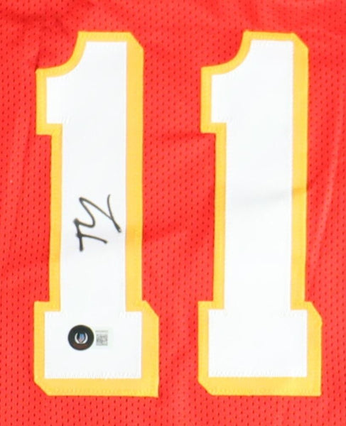 Custom on-court style jersey. Everything is printed on, size XL. Hand-signed by Trae Young.The autograph includes an official Beckett Authentication Services serially numbered hologram for authenticity purposes. The signing of this item was witnessed by Beckett.Authentication: Beckett Hologram Shop our ebay store / Friendly Confines Collectibles for thousands of different autographed jerseys