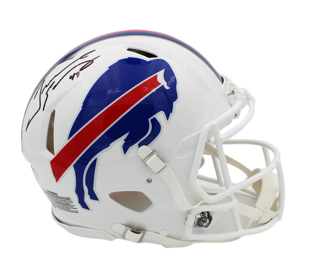 A Buffalo Bills Speed Authentic NFL Helmet hand signed by Tremaine Edmunds. The item and signature are in excellent condition. Tremaine was drafted into the NFL in 2018 Round:1,Pick:16. Tremaine 2xPro Bowl (2019,2017). Tremaine First team All-ACC (2017). AUTHENTICATION: The item is accompanied by a Certificate of Authenticity - Serial Numbered and Databased Hologram - Picture of Tremaine from the signing