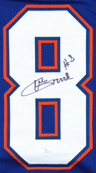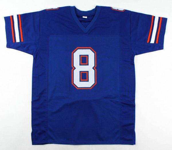 Custom on-field style jersey. Everything sewn on, size XL. Hand-signed by Trevon Grimes.The autograph(s) includes an official James Spence Authentication (JSA) "Signature Debut" hologram and COA. "Signature Debut" is the autographed memorabilia equivalent to a rookie card. The JSA definition of a "Signature Debut" is as follows: "Any item that is autographed and received by JSA prior to the last game of the signer's official rookie season.Authentication: JSA COA