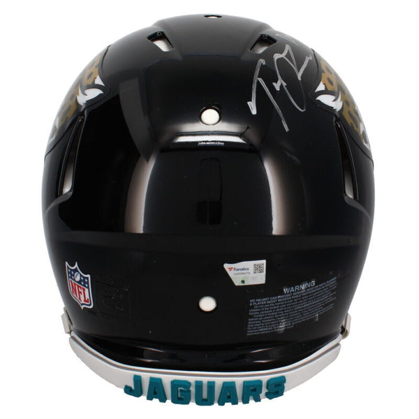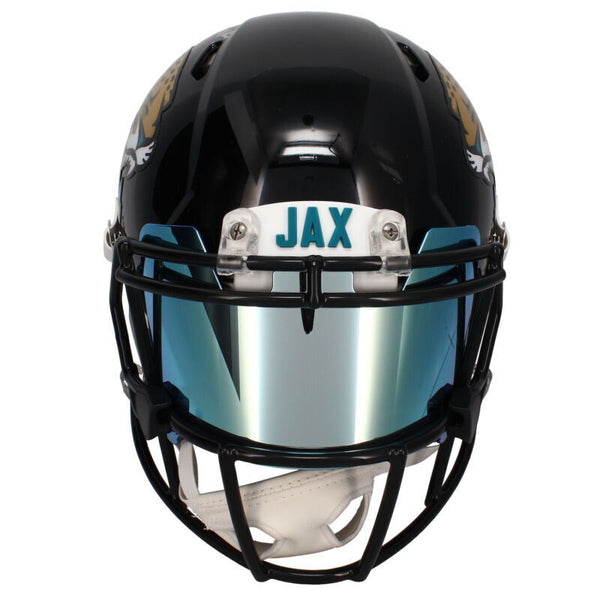This jacksonville jaguars authentic speed helmet has been personally hand-signed by trevor lawrence with the added inscription "duuuval!." it is officially licensed by the nfl and comes with an individually numbered, tamper-evident hologram from fanatics authentic. to ensure authenticity, the hologram can be reviewed online. this process helps to ensure that the product purchased is authentic and eliminates any possibility of duplication or fraud. included is a custom visor and 3d bumpers.