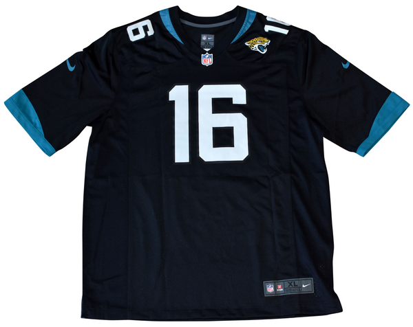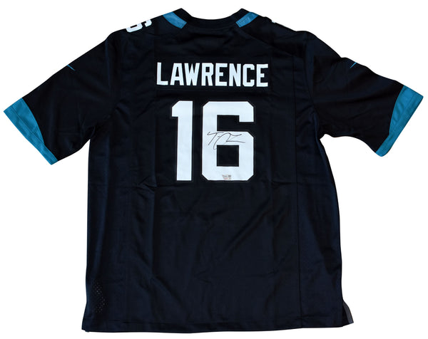 Trevor Lawrence, star quarterback for the Jacksonville Jaguars, has hand signed this Nike replica jersey. Jersey is new with tags attached and all letters/numbers are screen print. This item comes with a serial-numbered hologram from Fanatics Authentic, one of the leaders in the industry. The authenticity can be verified online by entering the serial-number. A Fanatics Authentic information card is also included.Item pictured may not be the exact item you will receive. It will be similar quality, and we guarantee your satisfaction.