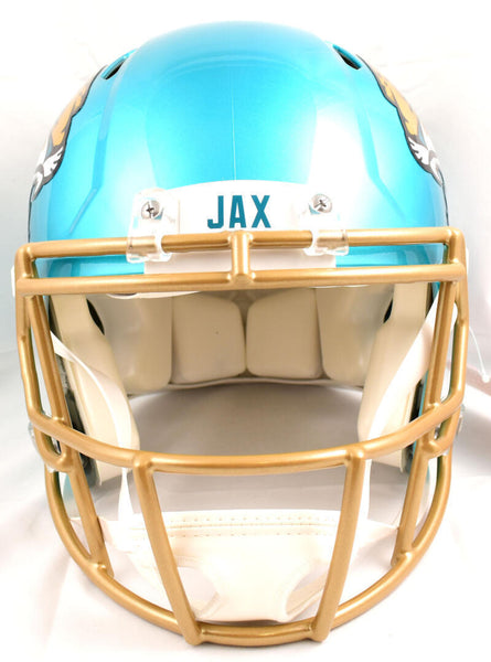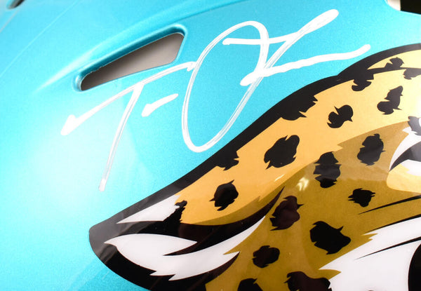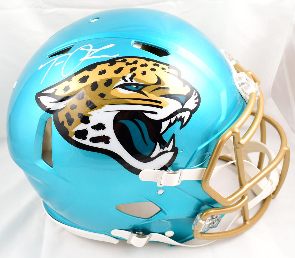Trevor Lawrence Autographed Jacksonville Jaguars F/S Flash Speed Authentic Helmet- Fanatics *White This is a hand autograph of Trevor Lawrence of the Jacksonville Jaguars on a Riddell Football Full Size Flash Speed Authentic Helmet. This item has a Fanatics Authentication, which comes with a numbered sticker hologram and a QR code for verification. You can view this item on the Fanatics Authentication website. It was signed either at a public autograph appearance or a private signing. This is a stock photo of the item. Although you may not receive this exact item, the item you receive is virtually identical and brand new in great shape.