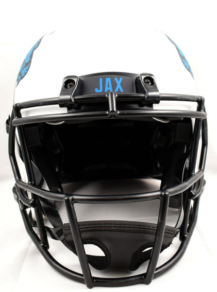 Trevor Lawrence Autographed Jacksonville Jaguars F/S Lunar Speed Authentic Helmet- Fanatics *Green This is a hand autograph of Trevor Lawrence of the Jacksonville Jaguars on a Riddell Football Full Size Lunar Speed Authentic Helmet. This item has a Fanatics Authentication, which comes with a numbered sticker hologram and a QR code for verification. You can view this item on the Fanatics Authentication website. It was signed either at a public autograph appearance or a private signing. This is a stock photo of the item. Although you may not receive this exact item, the item you receive is virtually identical and brand new in great shape.