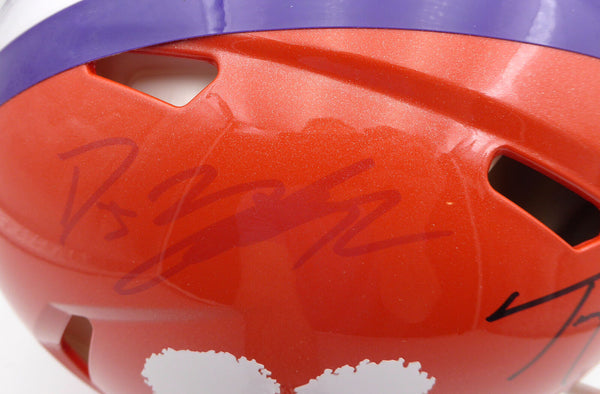 This is a Clemson Tigers Authentic Orange Full Size Helmet that has been hand signed by Trevor Lawrence & DJ D.J. Uiagalelei. It has been certified authentic by Fanatics.