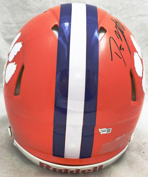 This is a Clemson Tigers Orange Full Size Authentic Speed Helmet that has been hand signed by Trevor Lawrence & DJ Uiagalelei. This item has been certified authentic by Fanatics and comes with their tamper-proof sticker.