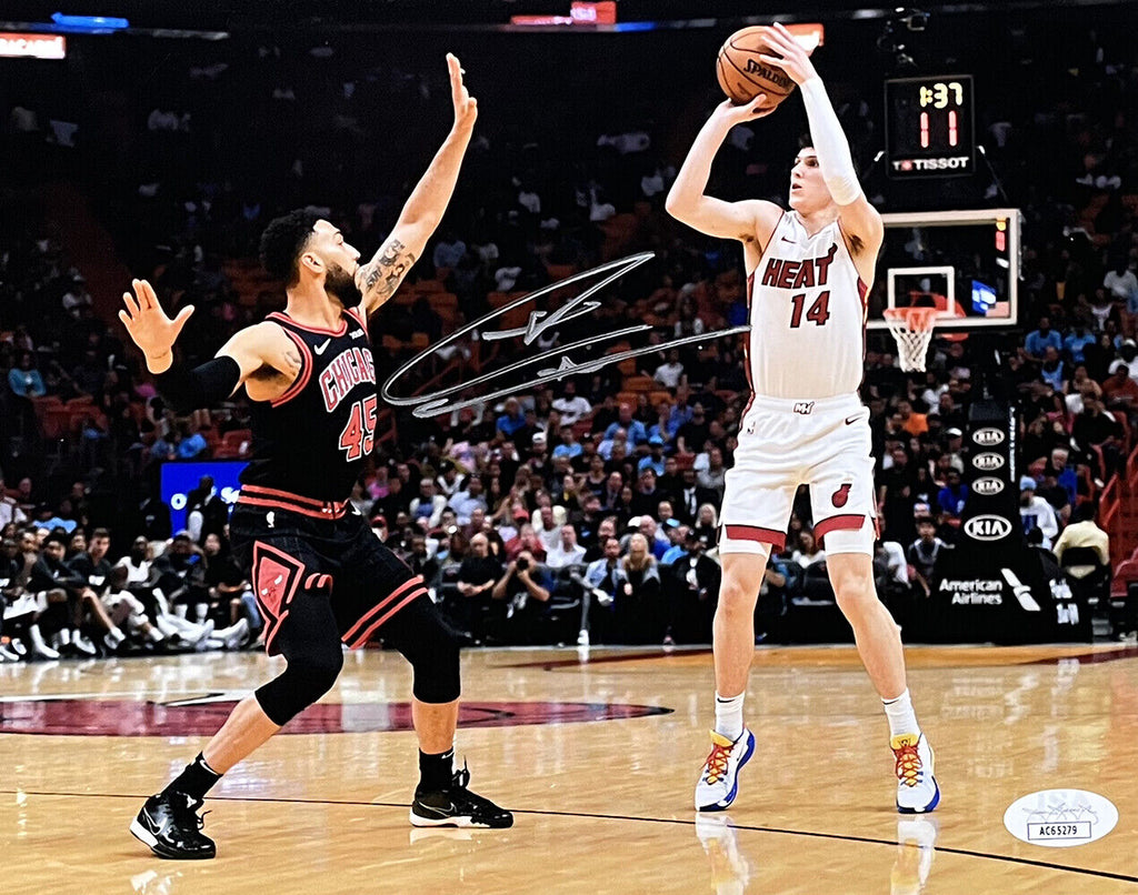 Featured is a Tyler Herro signed 8x10 Miami Heat basketball photo. This was hand signed by Tyler Herro and authenticated by JSA authentication services. Included with the photo is a JSA hologram and certificate of authentication.. SPECIFICATIONS Autographed By: Tyler Herro Team: Miami Heat Sport: Basketball Authentication: James Spence Authentication (JSA)