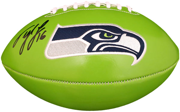 TYLER LOCKETT AUTOGRAPHED SEATTLE SEAHAWKS GREEN LOGO FOOTBALL MCS HOLO 182268