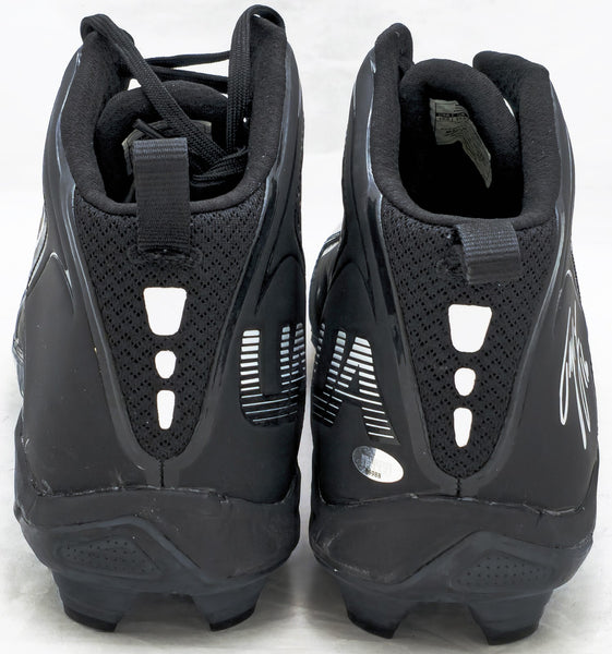 This is a pair of Black Under Armour Cleats (Size 13.5) that has been hand signed by Tyler Lockett. Tyler signed one of the cleats. This comes with the original shoe box. This item was signed in the presence of a Mill Creek Sports representative and comes with their serial numbered hologram and matching certificate of authenticity.