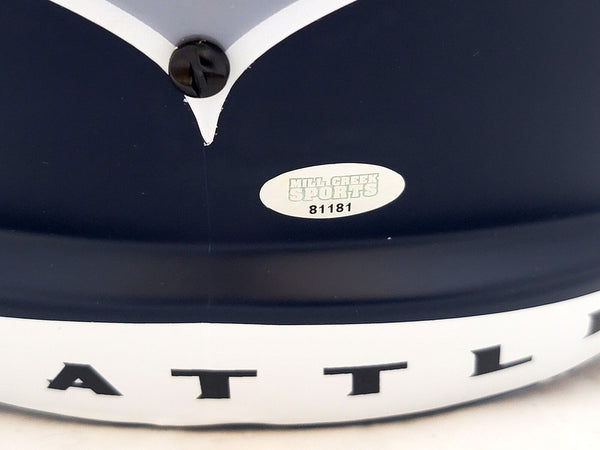 This is a Seattle Seahawks Blue Full Size Replica Speed Helmet that has been hand signed by Uchenna Nwosu. This item was signed in the presence of a Mill Creek Sports representative and comes with their serial numbered hologram and matching certificate of authenticity.