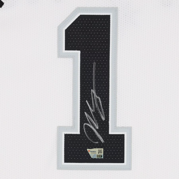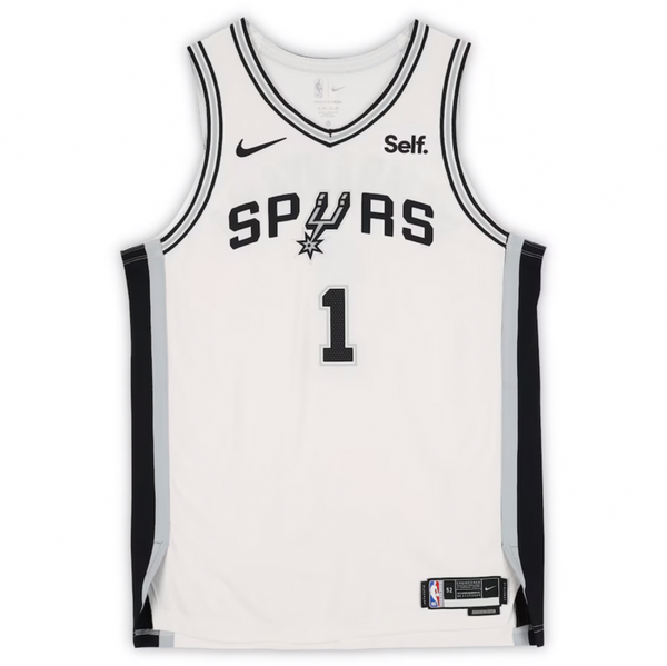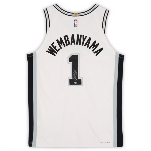 Victor Wembanyama Autographed San Antonio Spurs Nike White Association Edition Authentic Jersey with Sponsor Patch FanaticsThis Nike brand Association Edition white authentic jersey has been personally hand-signed by Victor Wembanyama. It is officially licensed by the National Basketball Association and comes with an individually numbered, tamper-evident hologram from Fanatics Authentic. To ensure authenticity, the hologram can be reviewed online. This process helps to ensure that the product purchased is authentic and eliminates any possibility of duplication or fraud.Made in the USAPersonally Autographed by Victor WembanyamaFanatics Authentic Presented by Mounted MemoriesIncludes tamper-evident hologram to ensure authenticityOfficially licensed This product is guaranteed authentic and includes a Fanatics Certificate of Authenticity and an accompanying tamper-evident Fanatics Hologram.