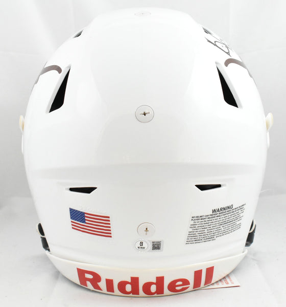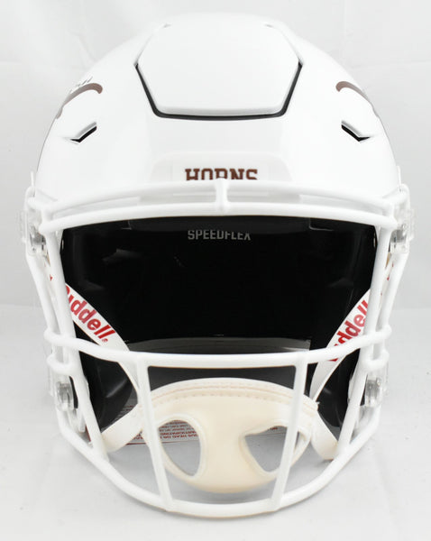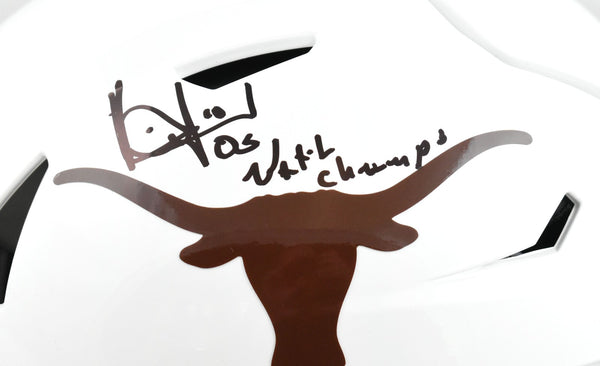 This is a Vince Young of the Texas Longhorns autographed Riddell football full size SpeedFlex Authentic helmet. Inscribed 05 National Champs. This item has a Beckett Witnessed Authentication, which comes with a numbered hologram and a QR code for verification. You can view this item on the Beckett Authentication website, and it shows when and where the item was signed. It was signed either at a public autograph appearance or a private signing. This is a stock photo of the item. Although you may not receive this exact item, the item you receive is virtually identical, brand new, and in great shape. *Autograph location may vary* This is a Vince Young of the Texas Longhorns autographed Riddell football full size SpeedFlex Authentic helmet. Inscribed 05 National Champs. This item has a Beckett Witnessed Authentication, which comes with a numbered hologram and a QR code for verification. You can view this item on the Beckett Authentication website, and it shows when and where the item was signed. It was signed either at a public autograph appearance or a private signing. This is a stock photo of the item. Although you may not receive this exact item, the item you receive is virtually identical, brand new, and in great shape. *Autograph location may vary*
