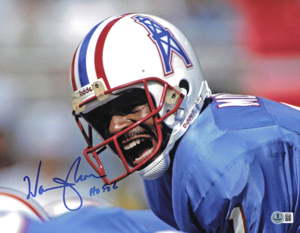 This is an 11x14 Photo that has been hand signed by Warren Moon. This item was inscribed "HOF 06." This item has been certified authentic by Beckett Authentication (BAS) and comes with their tamper-proof QR Code hologram.