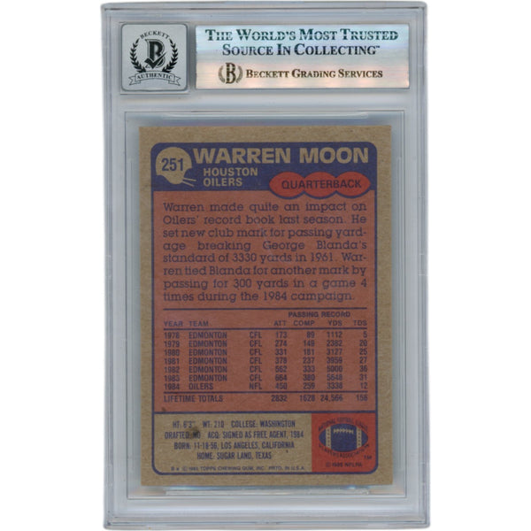 Warren Moon Autographed 1985 Topps #251 HOF Slabbed Trading Card Beckett 50624