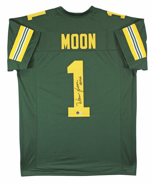 This Autographed Green Pro Style Jersey with the inscription of "HOF 06" has been Personally Signed by Warren Moon. This item is 100% Authentic to include a hologram by Beckett Authentication Services. This item will come with the new Beckett Authentication hologram that has a scannable QR code rather than the traditional COA. If you would like to have a COA, you are welcome to reach out to Beckett for a printed certification once you receive your item. This is a BAS Witnessed Protection Program item which means a Beckett Authentication Service representative was present when this item was being signed. The authenticity can be verified on Beckett Authentication Services website. This is a X-Large sized, non-branded, custom-stitched Jersey.