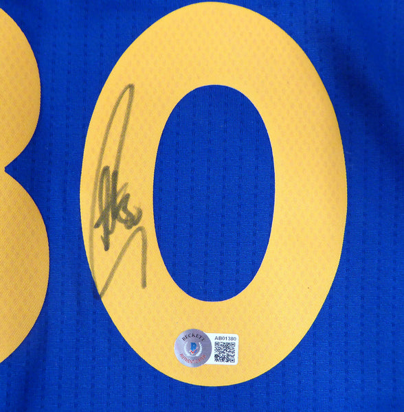 This is a Blue Nike Golden State Warriors Jersey that has been hand signed by Stephen Curry. The jersey is a Size XXL. There is an imperfection in the signature as shown. This item has been certified authentic by Beckett Authentication (BAS) and comes with their tamper-proof QR Code sticker and full page letter of authenticity.