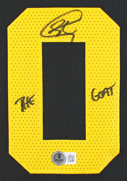 This Autographed Black Nike 2021 City Edition Authentic Jersey with the inscription of "The Goat" has been Personally Signed by Stephen Curry of the Golden State Warriors. This item is 100% Authentic to include a hologram by Beckett Authentication Services. This item will come with an affixed Beckett Authentication Services (BAS) authentication sticker, which includes a scannable QR code to verify authenticity. Please note that Beckett no longer provides serial-numbered COA cards, and the attached BAS sticker will serve as the complete authentication for this item. We have multiples of this same item. While the photographs are representative of this item, the size, placement and strength of the signature may vary. Each item is hand signed, therefore, each autograph is unique. Multiple sizes available. Reach out for availability.