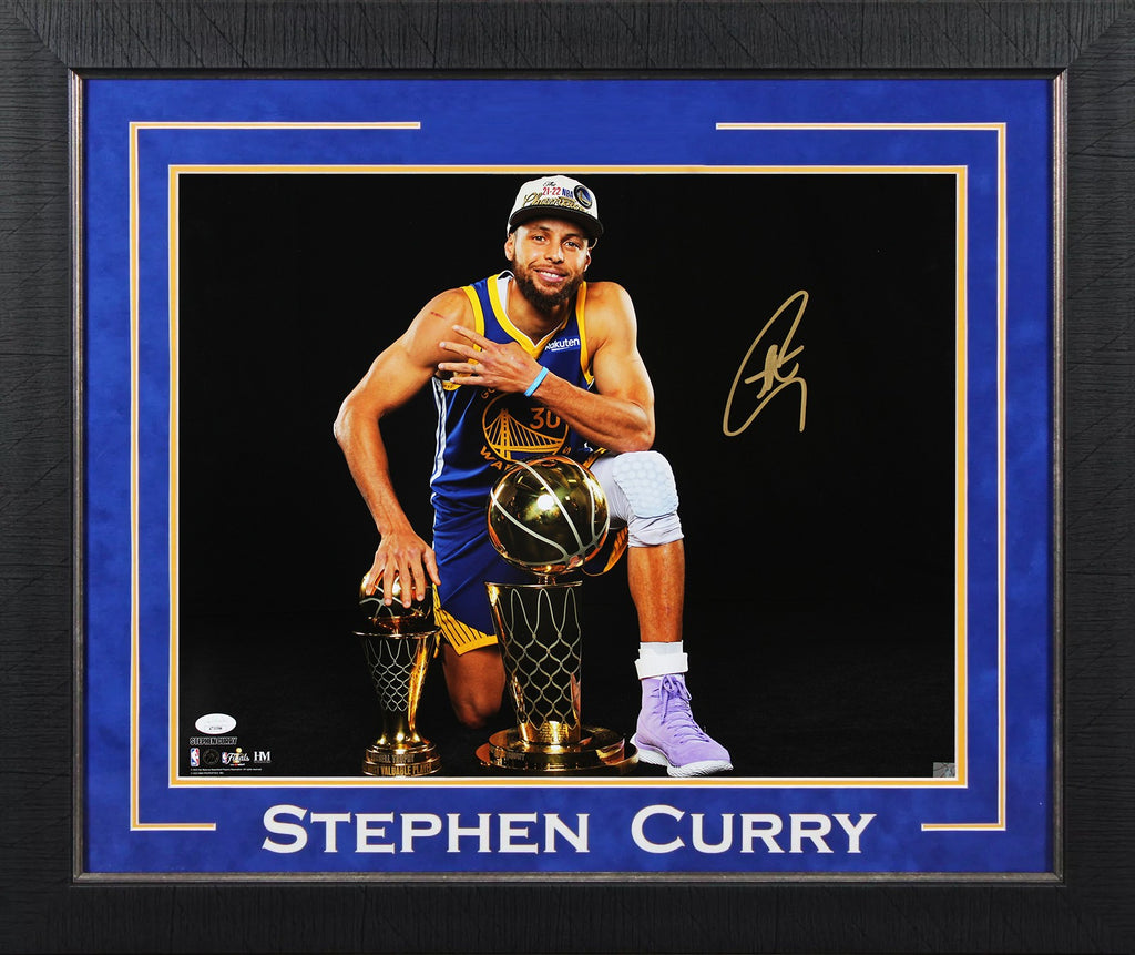 This Autographed Horizontal Trophy Blackout 16x20 Framed Photo has been Personally Signed by Stephen Curry of the Golden State Warriors. This item is 100% Authentic to include a Certificate of Authenticity (COA) / hologram by JSA. We have multiples of this same item. While the photographs are representative of this item, the size, placement and strength of the signature may vary. Each item is hand signed, therefore, each autograph is unique. This item has been professionally framed to overall dimensions of approximately 23.5 x 28 inches. This photo will be framed to order, it will take approximately 3-4 business days to process prior to shipment.