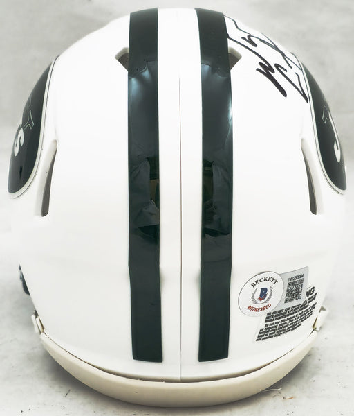 This is a New York Jets White Speed Mini Helmet that has been hand signed by Wayne Chrebet. This item has been witnessed and certified authentic by Beckett Authentication (BAS) and comes with their tamper-proof witness sticker.