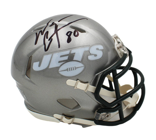 A New York Jets Speed Flash NFL Mini Helmet hand signed by Wayne Chrebet. The item and signature are in excellent condition. Wayne is a former professional football player. He Played 11 seasons for the New York Jets. AUTHENTICATION: The item is accompanied by a JSA Certificate of Authenticity - JSA Serial Numbered and Databased Hologram.