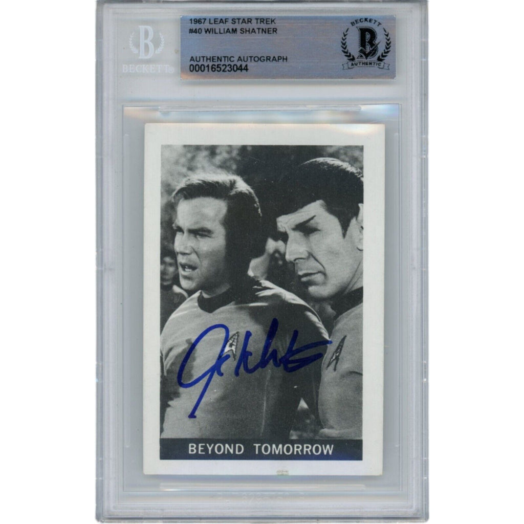 The number in the listing title is just an inventory sku for our records and is not the authentication number. The item pictured is the exact item you will receive, please see photos for condition. This is a 1967 Leaf Slabbed Trading Card that was personally autographed by William Shatner. Includes a certificate of authenticity from Beckett Authentication Services (BAS) and Denver Autographs.
