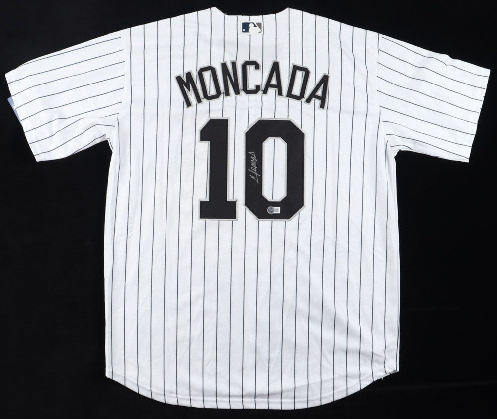 Custom on-field replica jersey. Everything sewn on, size XL. Hand-signed by Yoan Moncada of the Chicago White Sox.The autograph includes an official Beckett Authentication Services serially numbered hologram and QR Code card for authenticity purposes. The signing of this item was witnessed by Beckett.Authentication: Beckett Hologram with QR Code cardCheck out all the items in our Friendly Confines Collectibles store, Thanks for looking.