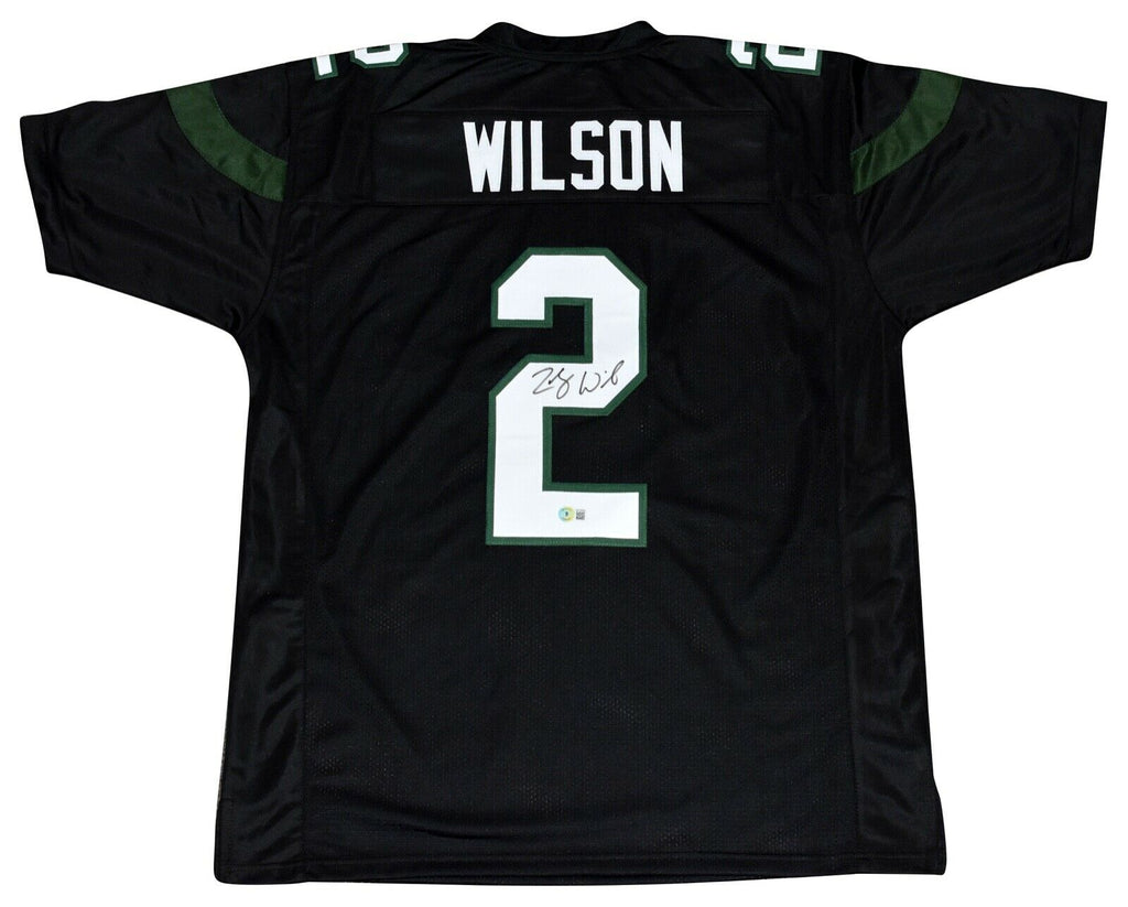 Zach Wilson, former quarterback for the New York Jets, has hand signed this custom jersey at a private signing. Jersey is size XL and all letters/numbers are sewn-on. This item is authenticated by Beckett Authentication Services and was signed in the presence of one of their representatives. Their tamper-evident hologram featuring a QR code and serial number is on the item. The authenticity can be verified online by entering the serial number or scanning the QR code.Item pictured may not be the exact item you will receive. It will be similar quality, and we guarantee your satisfaction.
