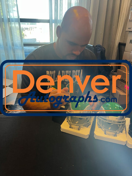 The number in the listing title is just an inventory sku for our records and is not the authentication number. The item pictured is a stock photo unless otherwise noted. This is a Philadelphia Eagles 2023 Kelly Green Mini Helmet that was personally autographed by Zack Baun. Includes a certificate of authenticity from Beckett Authentication Services (BAS) and Denver Autographs. FREE SHIPPING within the USA on orders over $10!