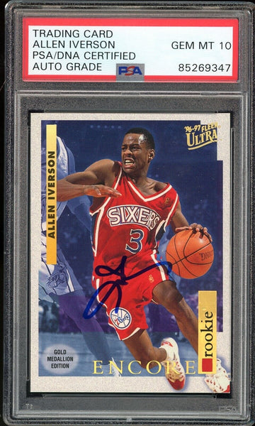 1996 Fleer Ultra Gold #G-270 Allen Iverson RC On Card PSA/DNA Auto GEM MINT 10