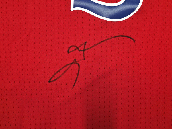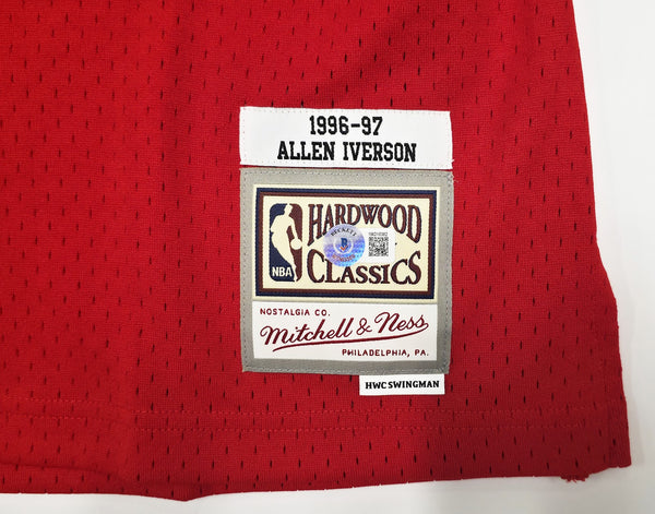 This is a Red Authentic Mitchell & Ness Philadelphia 76ers 1996-97 HWC Swingman Jersey that has been hand signed by Allen Iverson. This jersey is Size 2XL. This item has been witnessed and certified authentic by Beckett Authentication (BAS) and comes with their tamper-proof witness hologram.