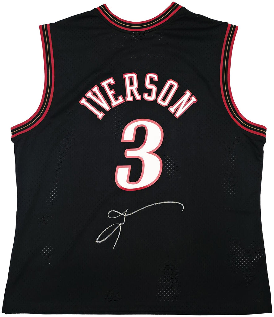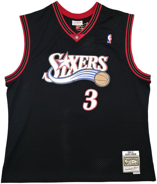 This is a Black Authentic Mitchell & Ness Philadelphia 76ers 2000-01 HWC Swingman Jersey that has been hand signed by Allen Iverson. This jersey is Size 2XL. This item has been witnessed and certified authentic by Beckett Authentication (BAS) and comes with their tamper-proof witness hologram.