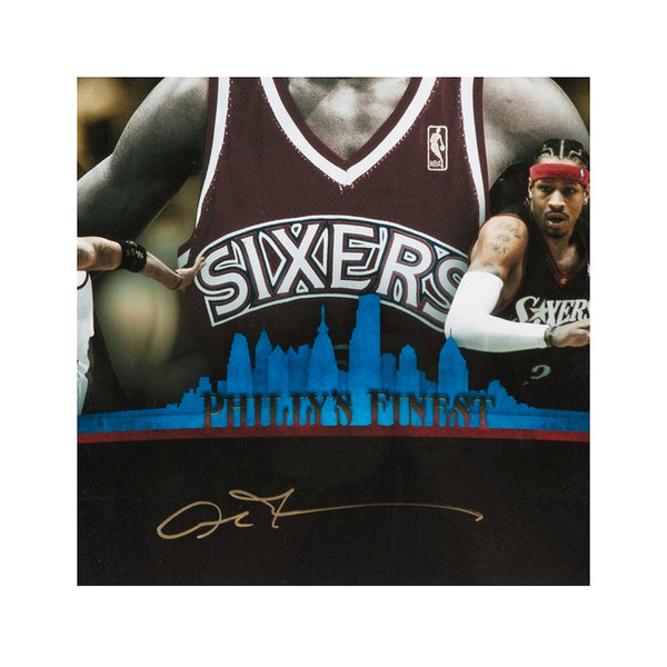 The city of Philadelphia is not only rich in American history, it's one of the most respected basketball cities in the world. From the playgrounds to high schools to colleges to the pros, Philly has been home to some of the greatest to ever play the game. Wilt Chamberlain, Kobe Bryant, Earl Monroe and Dr. J are just some of the city's contributors to the sport. For his time spent in the City of Brotherly Love, his immense talents and his effect on the culture of the game, Allen Iverson deserves a spot on that list with his fellow Hall of Fame greats. In this horizontally designed collage, the many talents of Iverson are on display in all his Sixers glory. The Philadelphia skyline highlights the bottom portion of this piece with AI's signature playing prominently below. Iverson has autographed this limited edition (30) "Philly's Finest" 36 x 15 image in silver paint pen. His signature is deemed authentic by virtue of Upper Deck Authenticated's Five-Step Process.