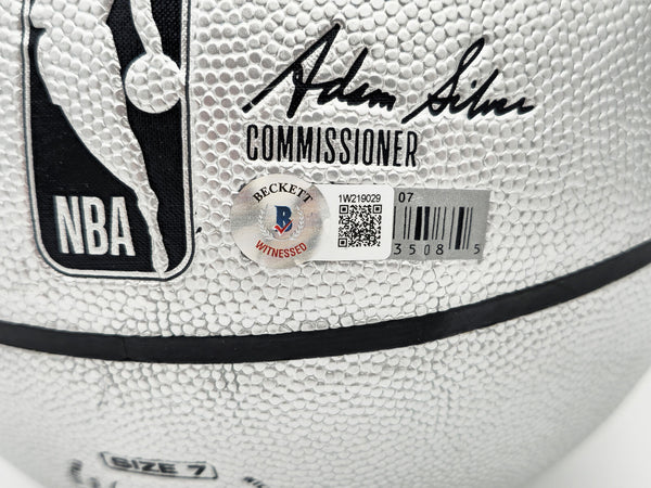 This is a Platinum Edition Composite Leather Basketball that has been hand signed by Allen Iverson. This item has been witnessed and certified authentic by Beckett Authentication (BAS) and comes with their tamper-proof witness sticker.