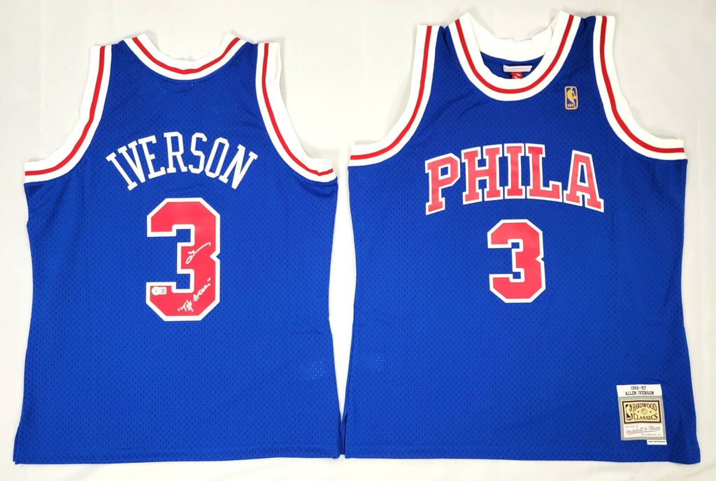 Allen Iverson Signed 76ers M&N Blue 96-97 Swingman Jersey W/ The Answer Beckett