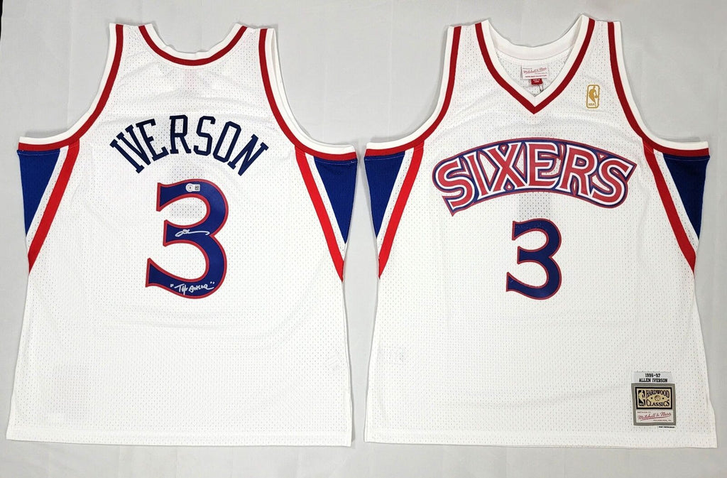 Allen Iverson Signed 76ers M&N White 1996-97 Swingman Jersey W/ The Answer BAS
