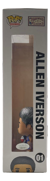 Featured is an Allen Iverson signed Philadelphia 76ers Slam Magazine Cover Funko Pop #01. This pop has been hand signed by Iverson and comes with the JSA witnessed hologram and certificate of authenticity. This pop would make a great addition to any sports memorabilia collection! SPECIFICATIONS Autographed By: Allen Iverson Team: Philadelphia 76ers Sport: Basketball Authentication: James Spence Authentication (JSA)