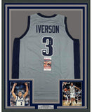 Framed Autographed/Signed Allen Iverson 33x42 Georgetown Grey Jersey JSA COA