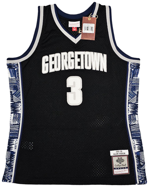 This is a Grey Authentic Mitchell & Ness Georgetown Hoyas 1995-96 College Vault Jersey that has been hand signed by Allen Iverson. This jersey is Size L. This item has been witnessed and certified authentic by Beckett Authentication (BAS) and comes with their tamper-proof witness sticker.
