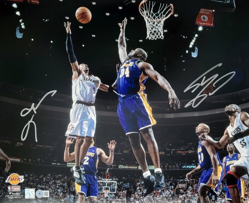 Shaquille O'Neal & Allen Iverson Autographed Lakers 76ers 16x20 Photo Beckett