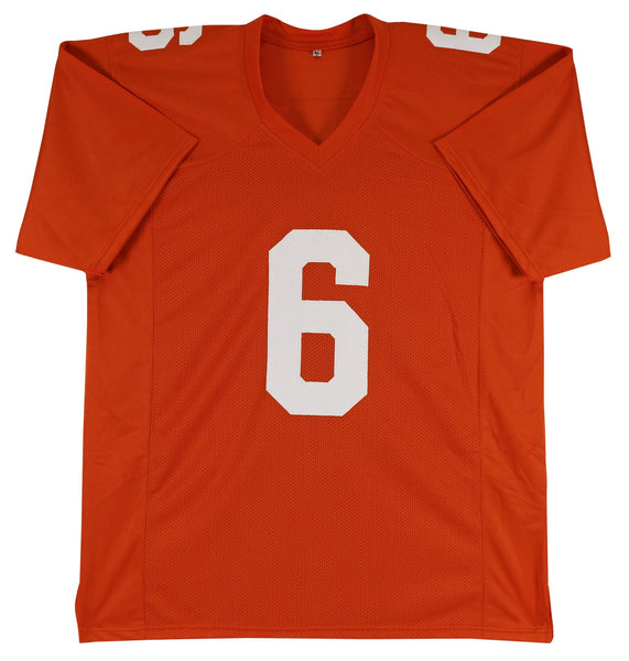 This Autographed Orange Jersey has been Personally Signed by Alvin Kamara of the Tennessee Volunteers. This item is 100% Authentic to include a Certificate of Authenticity (COA) / hologram by JSA Witness. This is a JSA Witnessed Protection Program item which means a JSA representative was present when this item was being signed. This is a stock item. We conducted an autograph signing with Alvin Kamara and we have several of these available. The one you will receive will be of equal quality to the one pictured. This item can be verified through JSA Witness. This is a X-Large sized, non-branded, custom-stitched Jersey. We only offers Authentic Autographs by Alvin Kamara through Signings, In-Person Signings or Private Collections to include a 100% money back Lifetime Authenticity Guarantee.