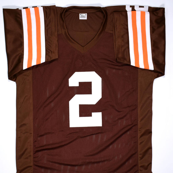 Amari Cooper Autographed Brown Pro Style Jersey- Beckett W Hologram *Black THIS IS NOT AN NFL JERSEY. THIS HAS NO TAGS, NO LOGOS, NO EMBLEMS. This is a Amari Cooper of the Cleveland Browns hand autographed custom made (non name brand) authentic style (stitched letters and numbers) jersey. This item has a Beckett Witnessed Authentication, which comes with a numbered hologram and a QR code for verification. You can view this item on the Beckett Authentication website and it shows when and where the item was signed. It was signed either at a public autograph appearance or a private signing. This is a stock photo of the item. Although you may not receive this exact item, the item you receive is virtually identical, brand new, and in great shape. Jersey size is XL.