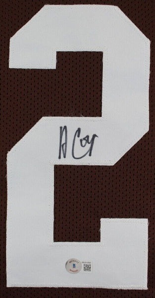 Custom on-field style jersey. Everything is sewn on, size XL. Hand-signed by Amari Cooper (Oakland Raiders, Dallas Cowboys, Cleveland Browns).The lot / autograph(s) includes an official Beckett Authentication Services serially numbered hologram with QR Code Card for authenticity purposes. The signing of this item was witnessed by Beckett.Authentication: Beckett Hologram with QR Code Card