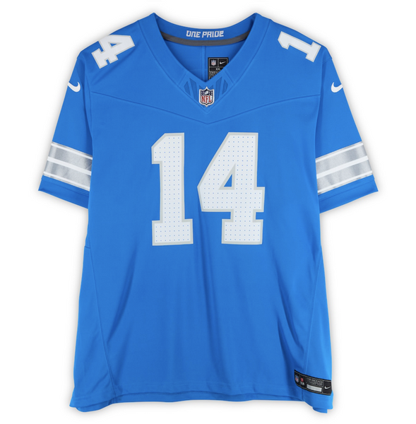 Amon-Ra St. Brown Autographed Detroit Lions Blue Nike F.U.S.E. Limited Jersey FanaticsThis jersey has been personally hand-signed by Amon-Ra St. Brown. It is officially licensed by the National Football League and comes with an individually numbered, tamper-evident hologram from Fanatics Authentic. To ensure authenticity, the hologram can be reviewed online. This process helps to ensure that the product purchased is authentic and eliminates any possibility of duplication or fraud. MONEY BACK GUARANTEE! If for any reason you are not completely satisfied with the quality or authenticity of your purchase, we will gladly give you a full refund or exchange, whichever you prefer up to 30 days after purchase. Please feel free to e-mail us with any questions. Thank you. Authenticator Pre-Certified Authenticator: Fanatics Authenticated History of item: Amon-Ra has signed this item in the presence of a representative from Fanatics Authenticated. Describe how you came to possess this item: Super Sports Center is a fully authorized dealer for Upper Deck Authenticated as well as Mounted Memories and Steiner Sports. Other information about you and / or the item: Super Sports Center strives to deliver the most authentic in sports memorabilia from trusted companies like Mounted Memories, Steiner Sports and Upper Deck Authenticated. If it exists, we can find it for you!