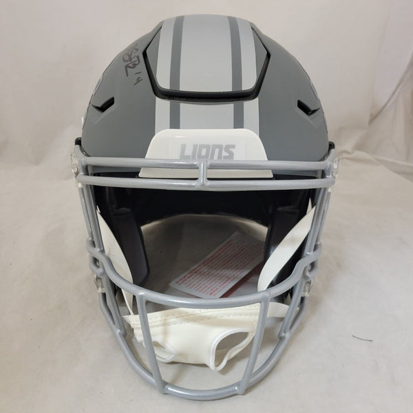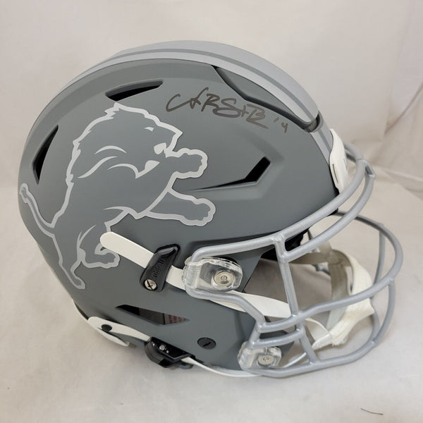 AMON RA ST BROWN AUTOGRAPHED / SIGNED DETROIT LIONS FULL SIZE SLATE SPEEDFLEX AUTHENTIC HELMET WITH BECKETT QR COA