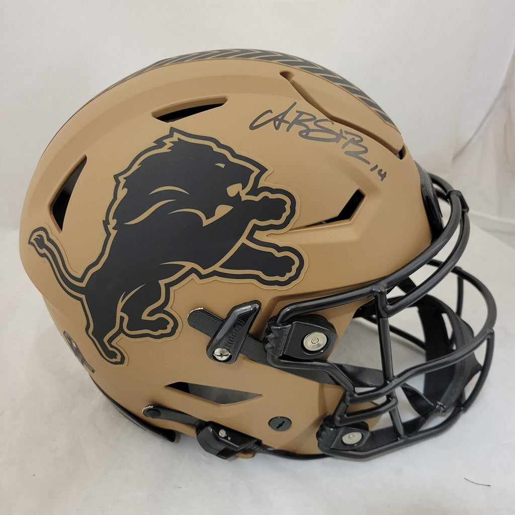 AMON RA ST BROWN AUTOGRAPHED / SIGNED DETROIT LIONS FULL SIZE SALUTE TO SERVICE (STS 2)SPEEDFLEX AUTHENTIC HELMET WITH BECKETT QR COA