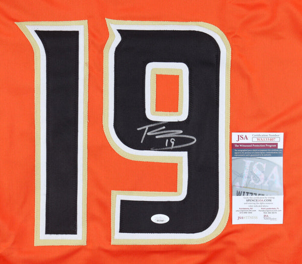 Custom on-ice style jersey. Everything is sewn on, size XL. Hand-signed by Troy Terry.The lot / autograph(s) includes an official James Spence Authentication (JSA) hologram and matching COA for authenticity purposes. The signing of this item was witnessed by JSA.Authentication: JSA COA